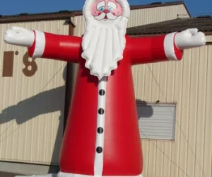 Un Père Noël Gonflable debout impressionnant vu d'en bas !